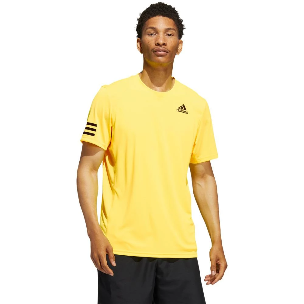 Cool sunny yellow that looks stylish and is comfortable. Country club style with a contemporary twist. Showing off horizontal 3-Stripes on one sleeve, this adidas Club tennis tee is built for comfort. Mesh panels and soft, ventilated fabric keep you cool and dry through the most intense rallies. An underarm gusset provides the freedom you need to nail every shot.