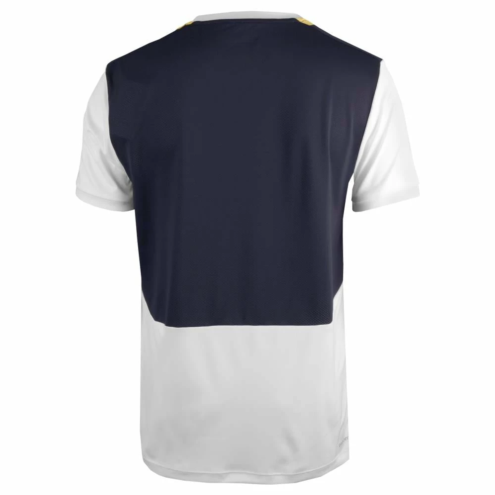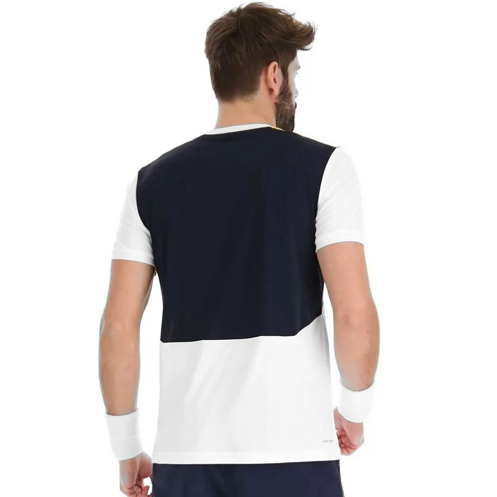 Cool, graphic style in a light weight sport tee in white, navy and yellow colour blocking. Lotto this tee designed for professional players that seek the highest level of performance. Dress like our champions do on the fields of the Grand Slam tournaments! The TOP TEN line is characterized by attention to details and Italian style, with tops and bottoms that can be mixed and matched separately. This tennis t-shirt is in DEEP DRY fabric to allow quick drying. DEEP DRY TECH – Apparel with a high level of dryness thanks to the fiber characteristics combined with the structure of the fabric itself, guaranteeing a transfer of sweat from the skin to the outside.