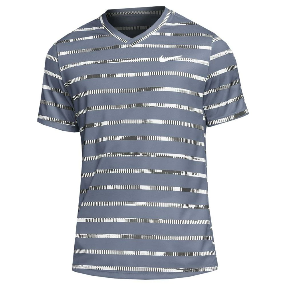 Unique graphic print in stylish ashen grey, ready for the tennis court. This high-performance, microfiber, polyester fabric wicks sweat away from the body and moves it to the fabric surface, where it evaporates. The updated design moves seams from the top of your shoulders to the front—and gives them a gentle curve that follows the shape of your arms. This product is made from at least 75% recycled polyester fibres. Nike Dri-FIT Technology moves sweat away from your skin for quicker evaporation, helping you stay dry and comfortable.